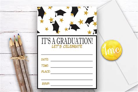 Fill In Graduation Invitation, Grad Invite, Grad Caps Invite, Graduation Party Invitation, Black, Gold, INSTANT DOWNLOAD, Digital, Invite