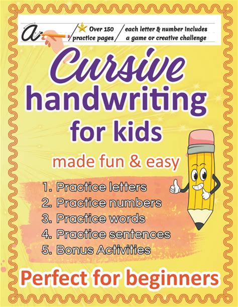 Cursive Handwriting Workbook For Kids Ages 8-12: 180 Pages Of Fun Cursive Practice - Letters, Numbers, Words, Sentences, Silly Challenges & Bonus