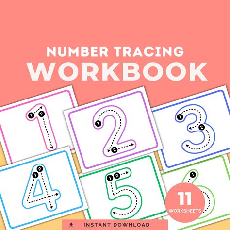 Number Tracing Printable Worksheet. Preschool, Pre-K, Kindergarten Homeschool Numbers 1-10 Workbook.