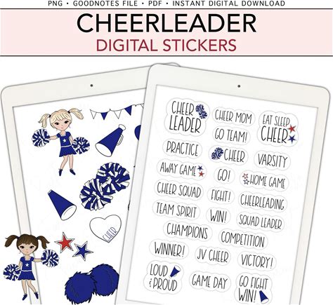 CHEERLEADER BLUE Goodnotes Stickers, Pre-Cropped Digital Planner Stickers, Bonus Stickers