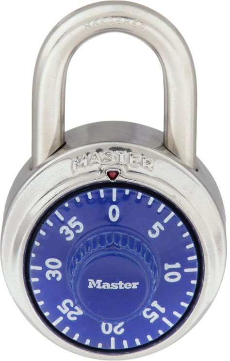 Master Lock Combination Padlock: Gen Security, MASTER LOCK, Hardened Steel, Stainless Steel, Silver, Blue, Front Model: 1502BLU