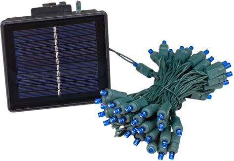 Novelty Lights 50 Light Solar LED Christmas Mini Light Set, Blue, Outdoor String Lights, Green Wire, 12.5 Feet