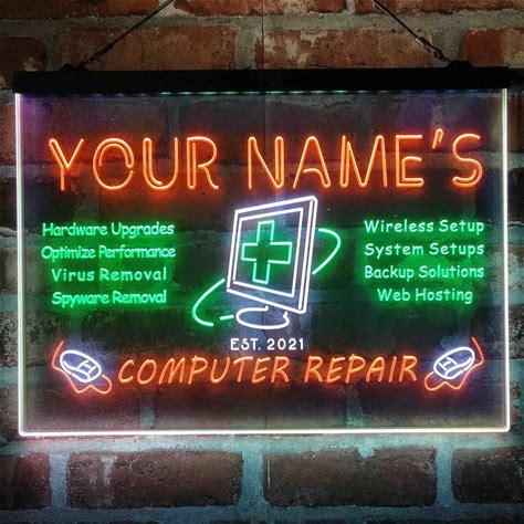 Personalized Computer Repair Home Bar Tri-Color LED Neon Light Sign, Unique 3D Engraved Art Decor | Customize Name Date Man Cave St9-Tr1-Tm