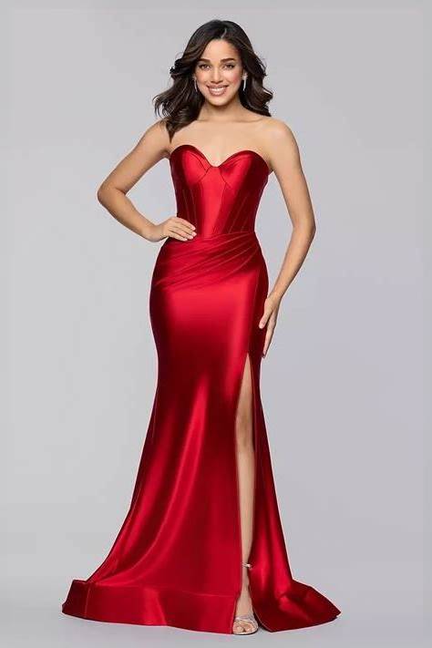 Blondie Nites Strapless Illusion Lace Applique Satin A-Line Dress In Red | Size: 11 | David's Bridal