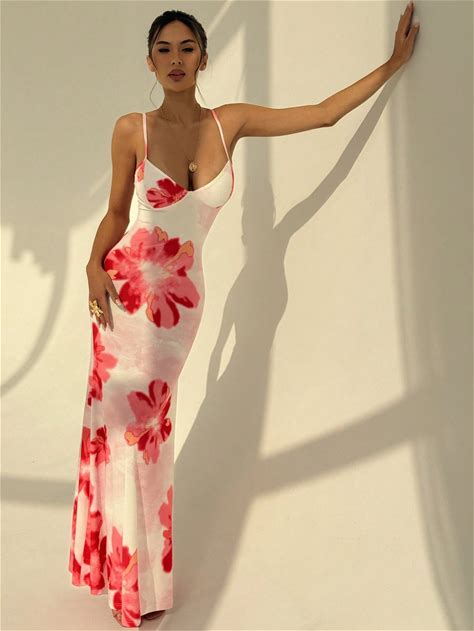 Spring/Summer Romantic Women's White Floral Print Spaghetti Strap Princess Long Dress,Sweet&Elegant For Date&Holiday&Going Out,Spring Clothes For Women,S