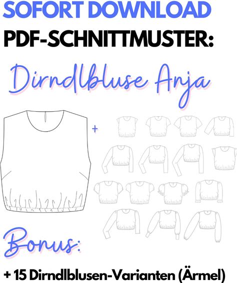 Dirndlblouse Sewing Pattern Anja | NO Ebook | Advanced | PDF Download A4/A0 | Sizes 34-48