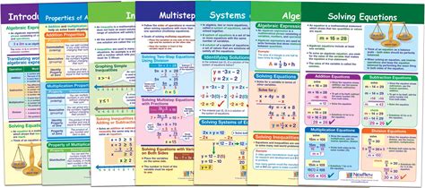 Newpath Learning Algebra Skills Bulletin Board Charts, Grades 6 To 8, Set Of 7 | Grades 6-10 | Adult