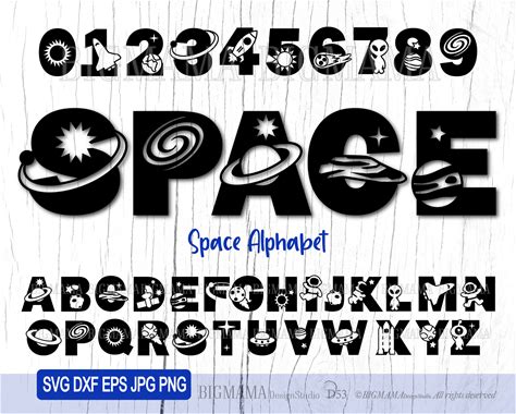 Space Alphabet SVG,Numbers,Letters,Spaceship,Astronaut,Solar System,Bundle,Birthday,PNG,Boys,Alien,Font,Cricut,Cameo,Instant Download_D53