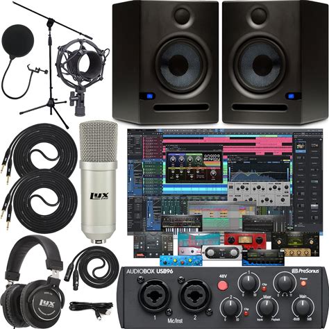 Presonus Audiobox 96 Interface With Presonus Microphone, Headphones, XLR Cable Bundle With Knox Gear Studio Stand, Pop Filter And Shock Mount (7 Items)