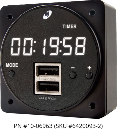 Mid-Continent Instruments And Avionics CHRONOS Digital Clock 6420093-2 Dual USB